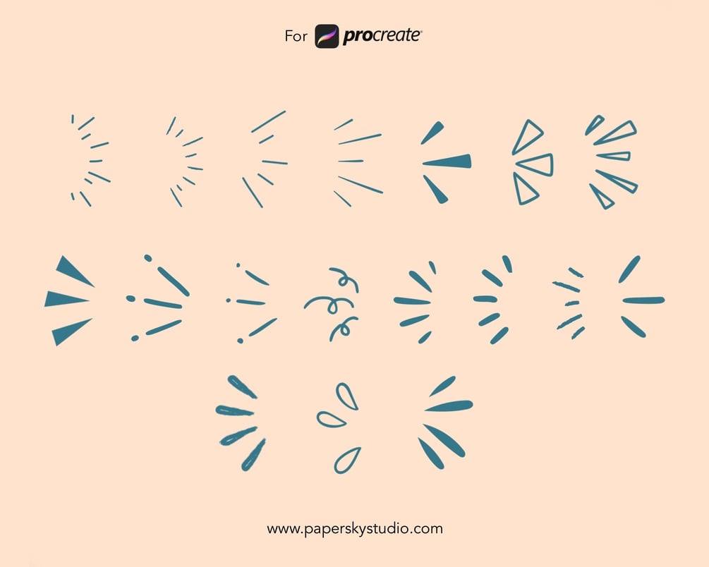 Highlight focal points and enhance your lettering compositions or text with this set of 18 Emphasis Lines Stamp Brushes for Procreate. These dynamic brushes are perfect for directing attention, adding dramatic flair, or emphasizing key elements or text in your work.