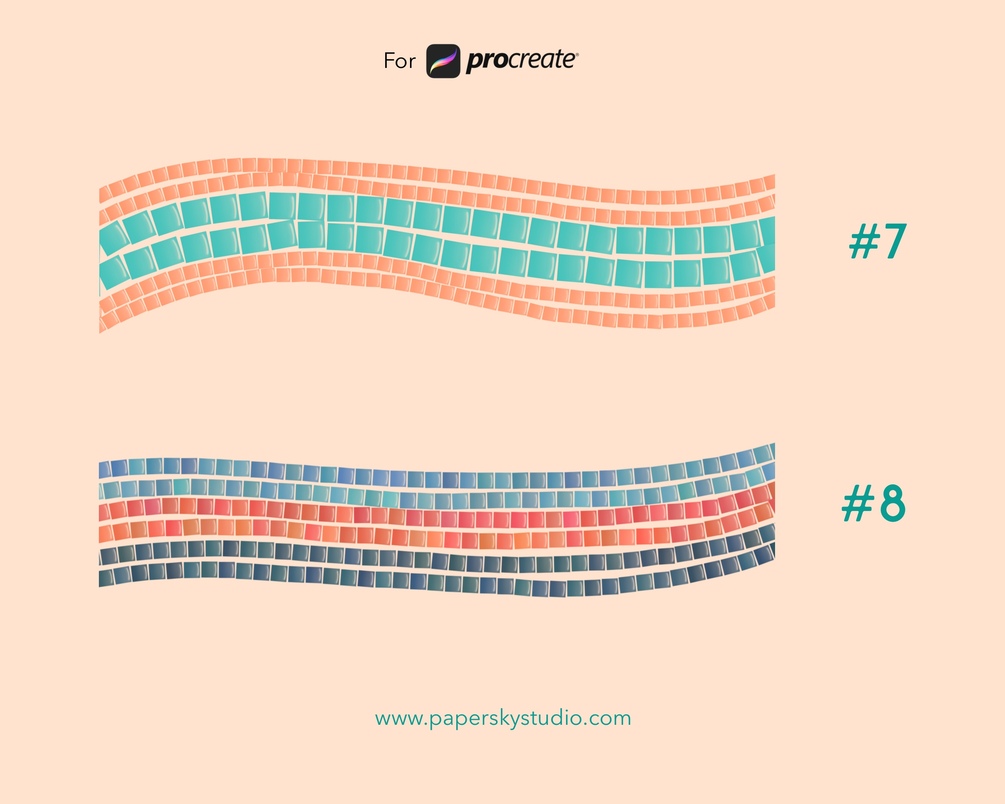 Take your digital artistry to new heights with PaperSky Studio's Mosaic Tile Texture Procreate Brushes - a must-have toolkit for Procreate users! Unleash your creativity and give your digital artwork an authentic, handcrafted feel with this pack of 12 meticulously crafted brushes.